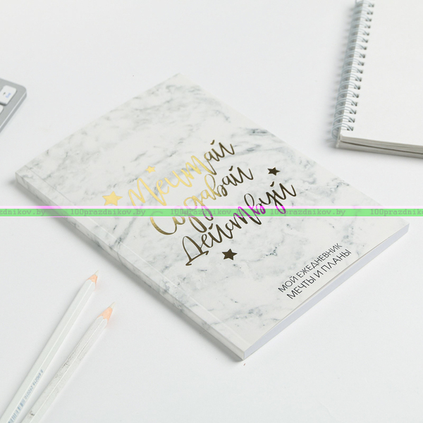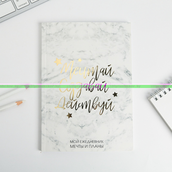 Ежедневник-планинг в тонкой обложке с тиснением"Мечтай.Создавай.Действуй. МРАМОР" А5, 80 листов
