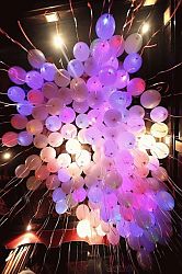 А конструкция светящихся шаров довольно проста – внутрь обычного воздушного шарика помещается светодиодное устройство, которое способно светиться несколькими цветами, мигать, переливаться в нескольких режимах интенсивности. Шарик надувается гелием, для того, чтобы при отпускании он сразу взмывал вверх. Если надуть шары обычным воздухом, то можно украсить помещение для свадьбы эффектным светящимся ковром. Кроме этого, из них можно сооружать различные фигуры, умело сочетая расцветку и световой эффект. А для продления жизни шариков (ведь обычные держат форму не более 12 часов), можно заказать вариант с покрытием Hi-float – специальным средством, которым шарик обрабатывается изнутри. И тогда такие шары смогут летать очень долго, вплоть до недели.