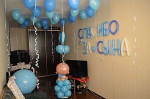 Разноцветными воздушными шариками с забавными картинками и надписями: «Ура! Мальчик», «Ура! Девочка» можно украсить автомобиль, на котором приедут за мамой и малышом. Из таких шаров легко сделать гирлянду или букет, которые увидят со всех окон роддома. Бывали случаи, когда счастливые папаши оставляли прямо под окнами палаты огромные связки воздушных шариков, чем вызывали бурный восторг и новоиспеченных мам, и медперсонала.