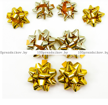 Бант Звезда, Золотой микс, Голография, 7 см, 1шт
