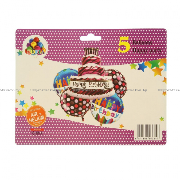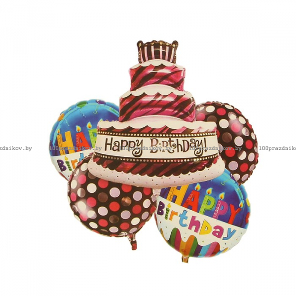 Букет из шаров "С днем рождения", фольга, набор из 5 шт.