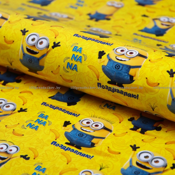 Бумага упаковочная глянцевая "Banana! Поздравляю!", Гадкий Я, 70х100 см