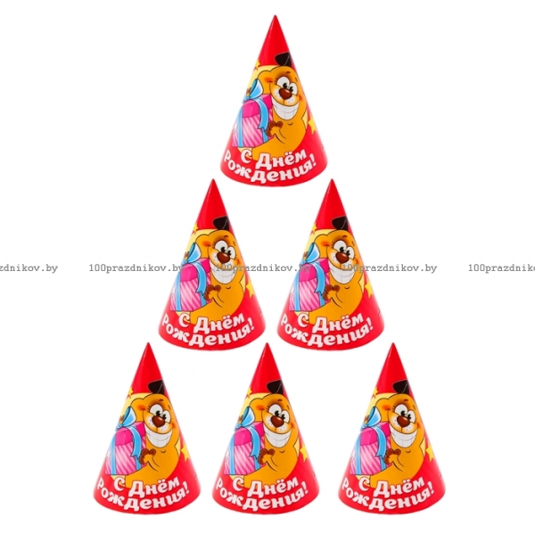 Колпак бумажный "С Днем рождения" веселая компания (набор 6 шт)