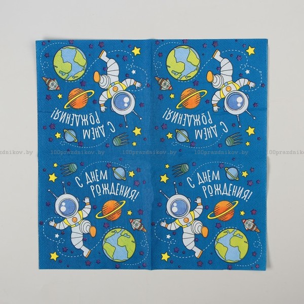 Cалфетка «С днём рождения», космонавт, 25х25, набор 20 шт.