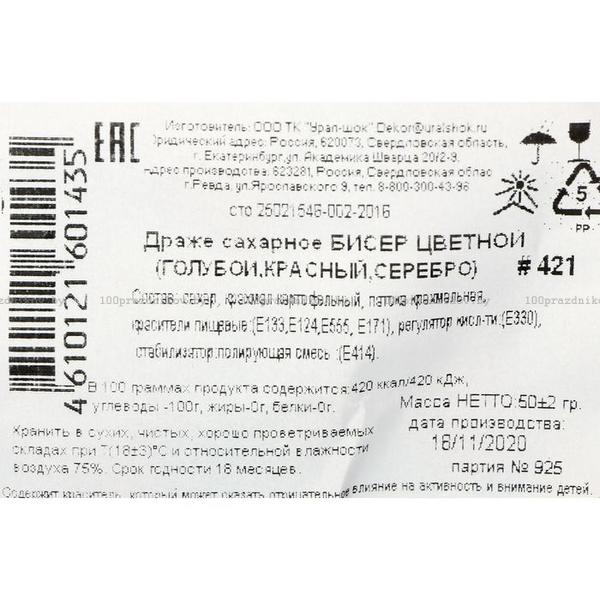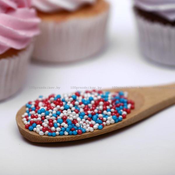 Драже сахарное Бисер цветной "голубой,красный, серебро" 50 г