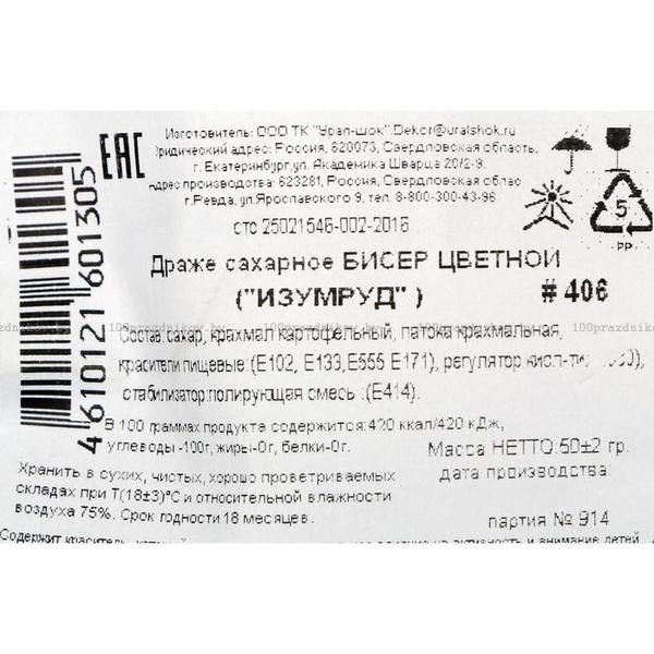 Драже сахарное Бисер цветной "изумруд" 50 г