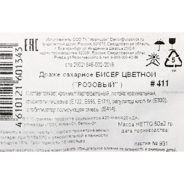 Драже сахарное Бисер цветной "розовый" 50 г