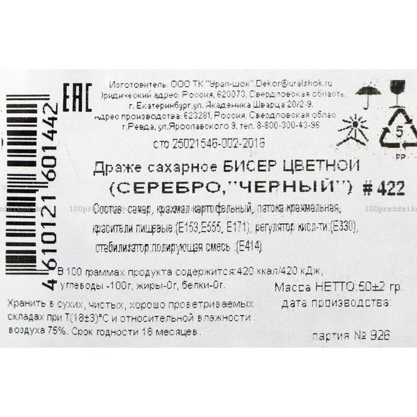 Драже сахарное Бисер цветной "серебро, черный" 50 г