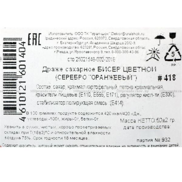 Драже сахарное Бисер цветной "серебро, оранжевый" 50 г
