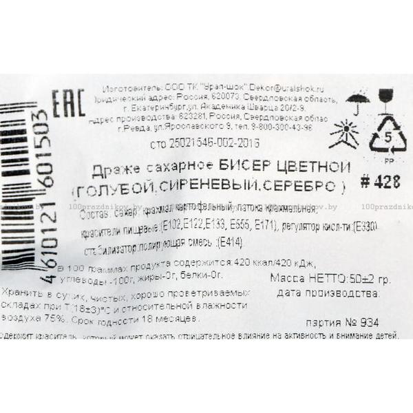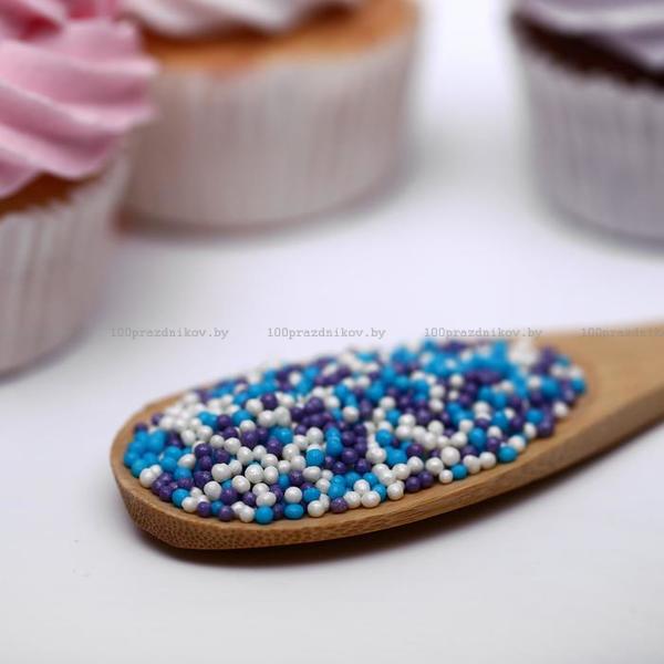 Драже сахарное Бисер цветной "сиреневый, голубой, серебро" 50 г