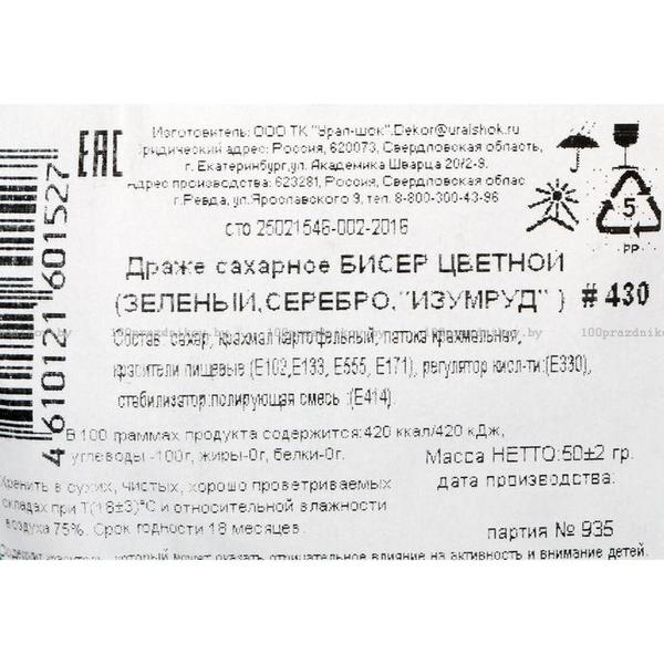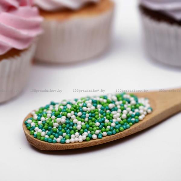 Драже сахарное Бисер цветной "зеленый, изумруд, серебро" 50 г