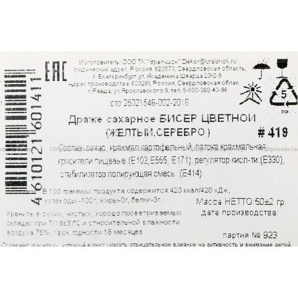 Драже сахарное Бисер цветной "желтый, серебро" 50 г