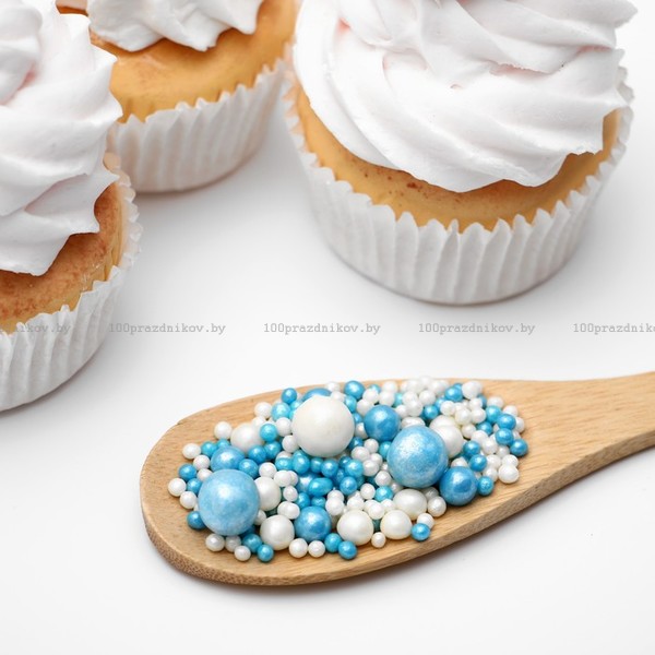 Драже «Жемчуг», взорванные зёрна риса в цветной кондитерской глазури, бело-голубой микс, 50 г