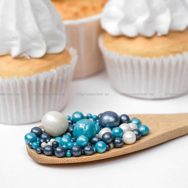 Драже «Жемчуг», взорванные зёрна риса в цветной кондитерской глазури, бирюза/чёрный/серебро, 50 г