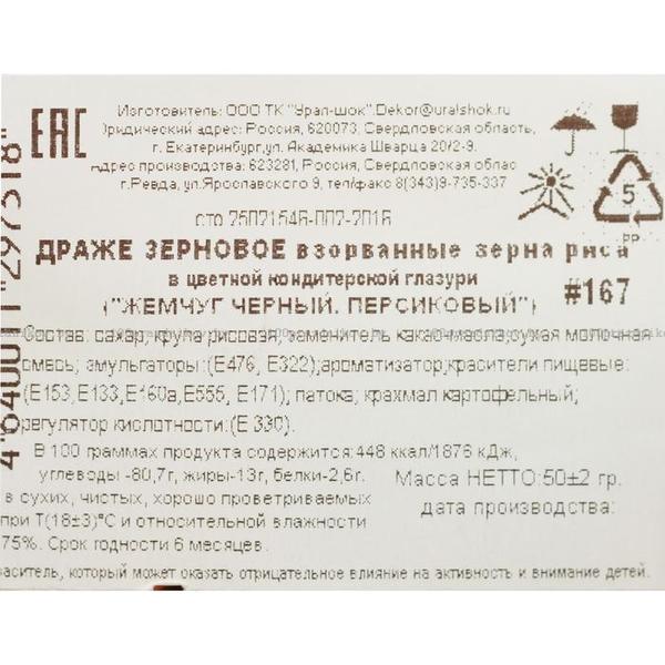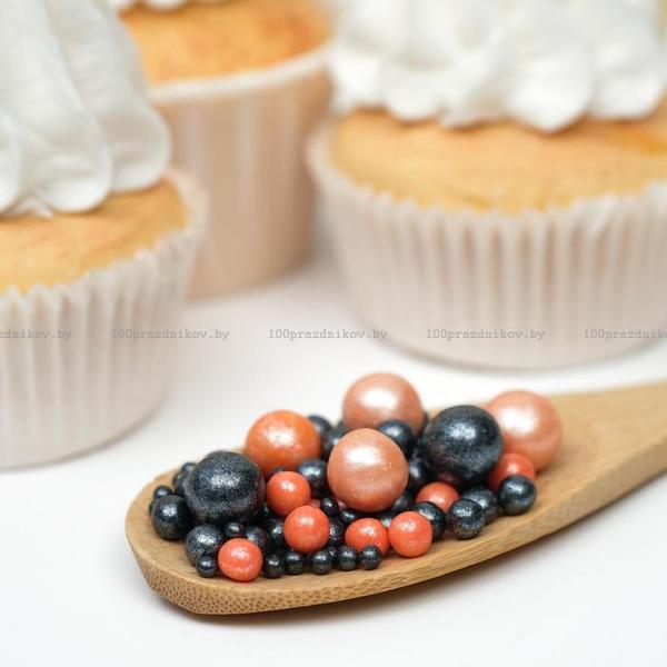 Драже «Жемчуг», взорванные зёрна риса в цветной кондитерской глазури, персиковый/чёрный №167, 50 г