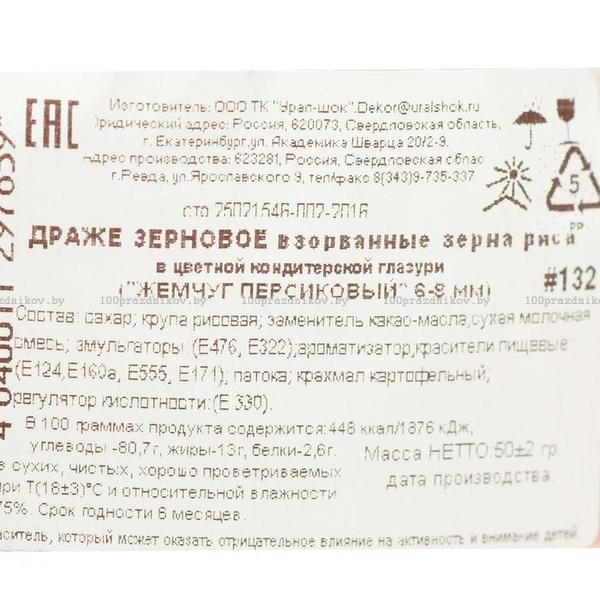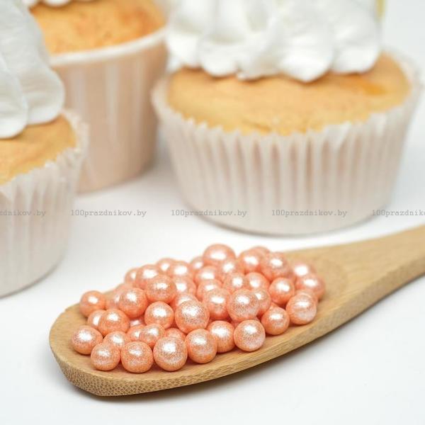 Драже «Жемчуг», взорванные зёрна риса в цветной кондитерской глазури, персиковый, диаметр 6-8 мм, 50 г