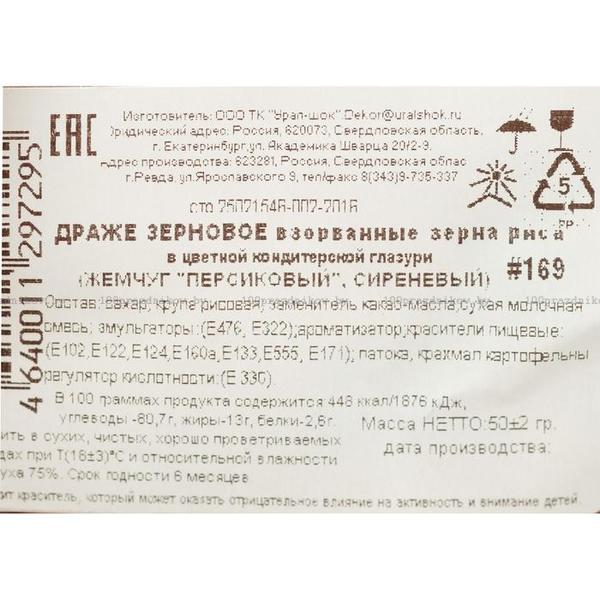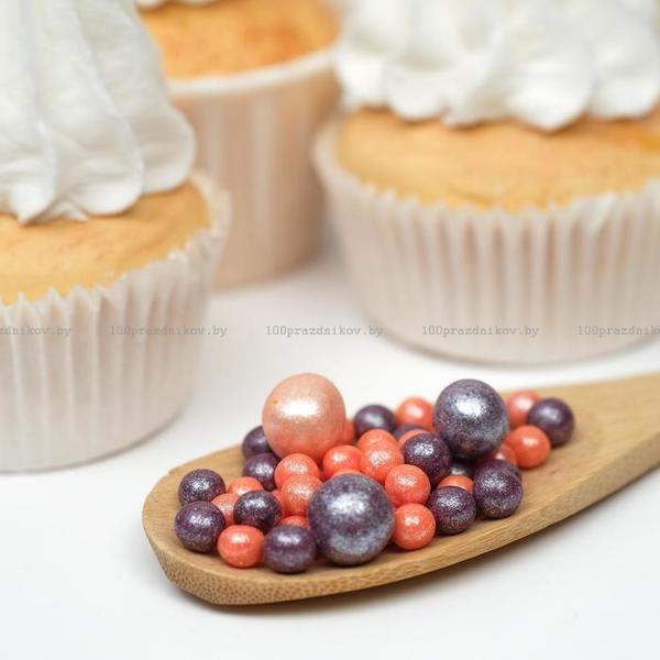 Драже «Жемчуг», взорванные зёрна риса в цветной кондитерской глазури, персиковый/сиреневый, 50 г
