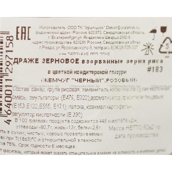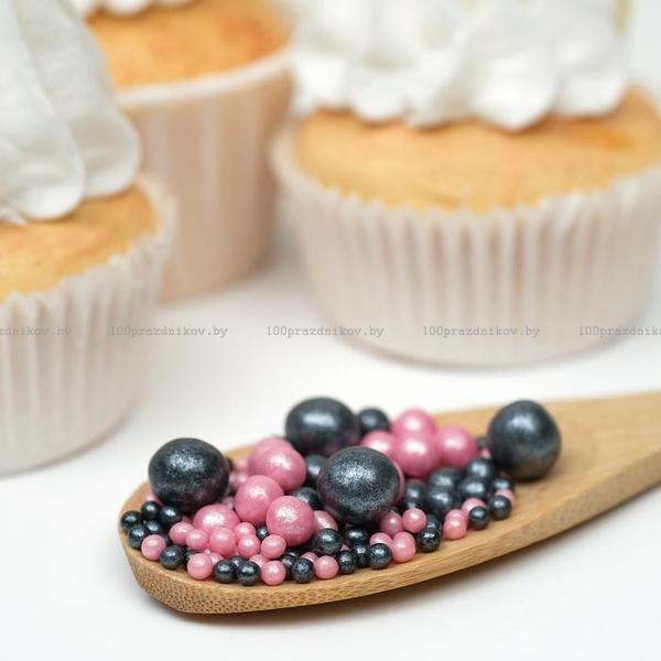 Драже «Жемчуг», взорванные зёрна риса в цветной кондитерской глазури, розовый/чёрный №183, 50 г