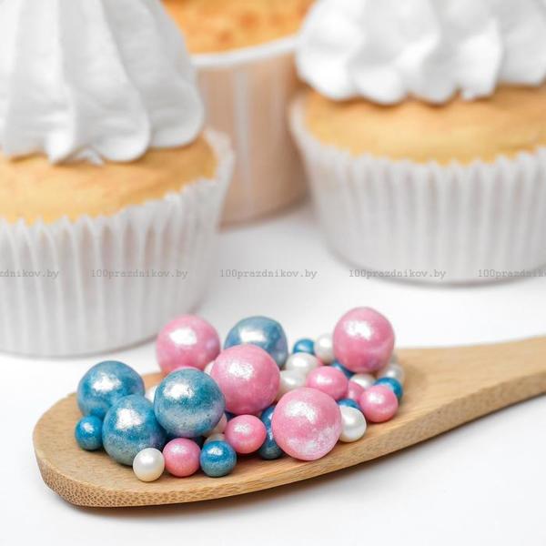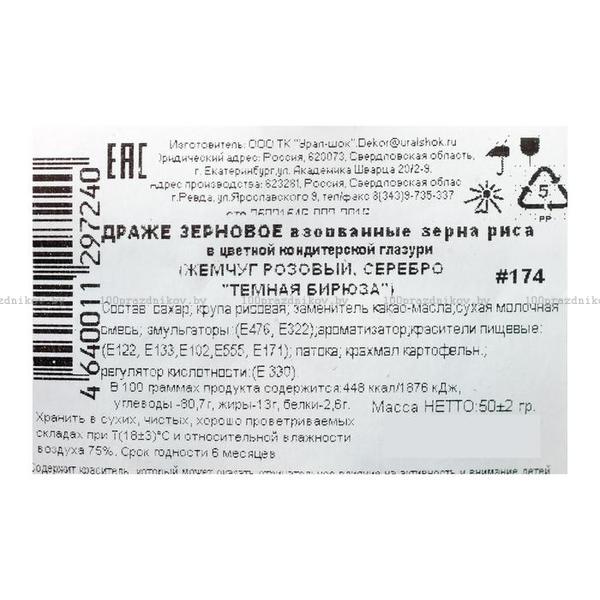Драже «Жемчуг», взорванные зёрна риса в цветной кондитерской глазури, тёмная бирюза/розовый/серебро, 50 г