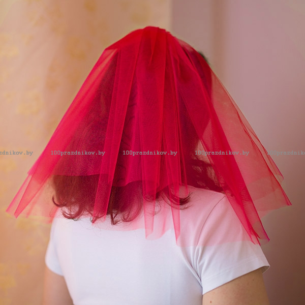 Фата на девичник, красная