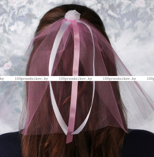 Фата на девичник "Цветок", розовый