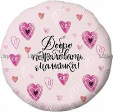 Фольгированный шар на выписку из роддома "Добро пожаловать, Малышка!" (сердечки), Розовый