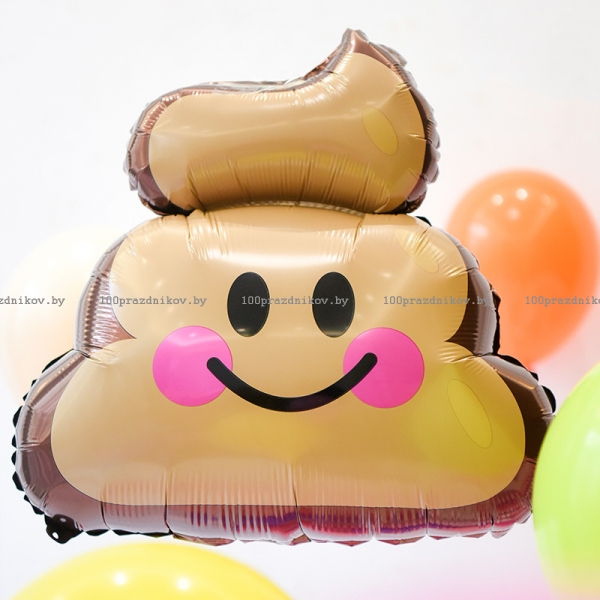 Прикол - фольгированный шар какашка для ценителей юмора. Как интересно, необычно и прикольно поздравить друга или подругу? Подарите прикольный шарик в виде улыбающейся какашки. Этот шар непременно вызовет улыбку у всех, кто его увидит.