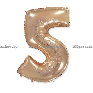 Фольгированный шар цифра 5, (40"/102 см),Gold Rose