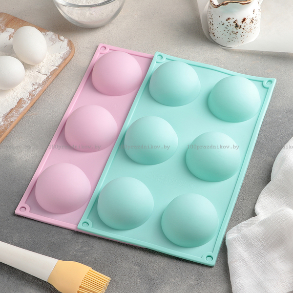 Форма для выпечки Доляна «Полусфера», 27×18 см, 6 ячеек (d=6,5 см)