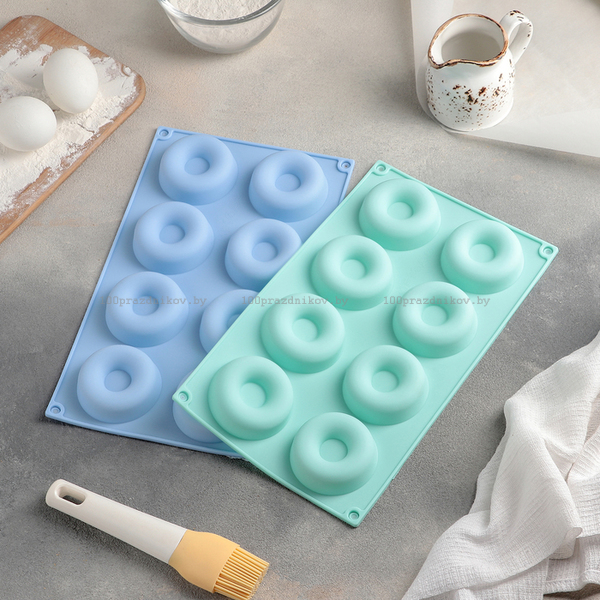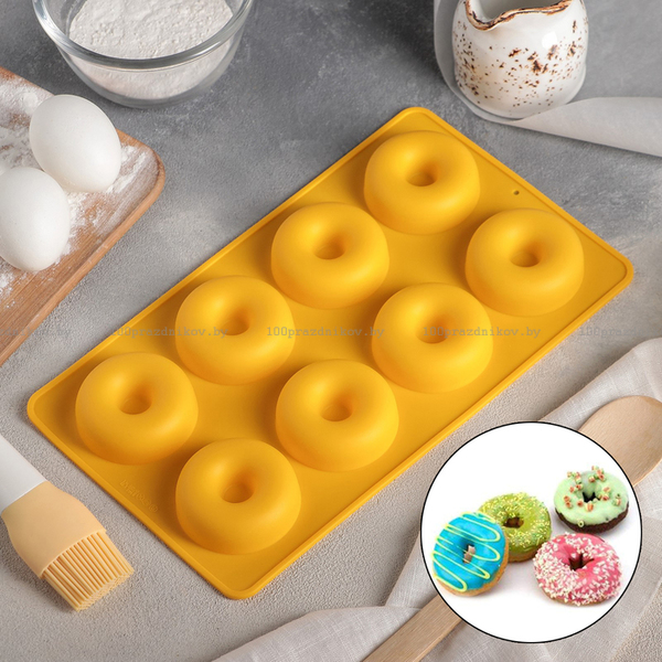 Форма для выпечки Доляна «Пончики», 29×17 см, 8 ячеек (d=6 см), цвет МИКС
