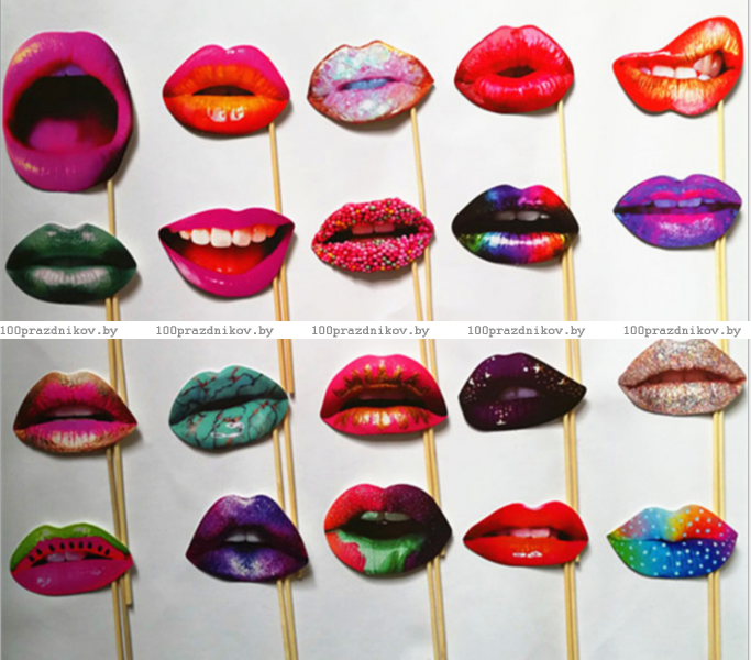 Фотбутафория на палочке "Разноцветные губы", 20 шт