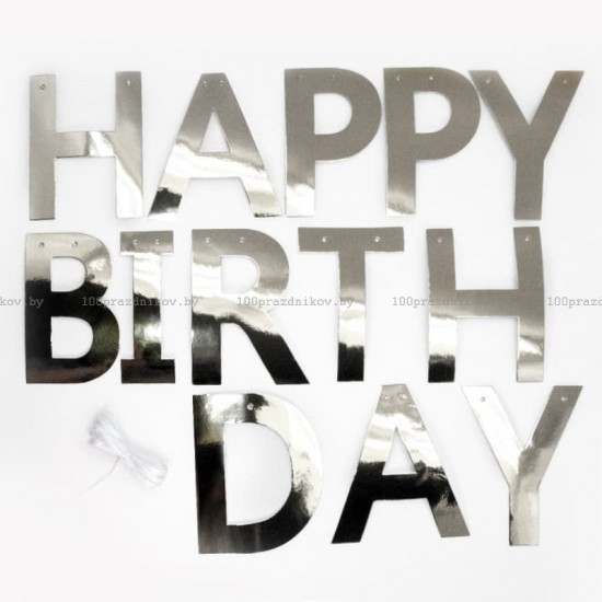 Серебристая гирлянда "Happy Birthday" станет интересным и ярким декором на вашем празднике.