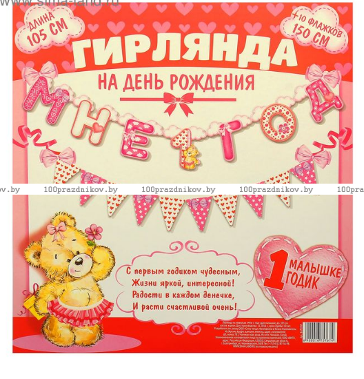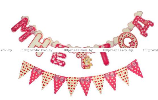 Гирлянда "С ДР кароч!" розовая, дл.108 см