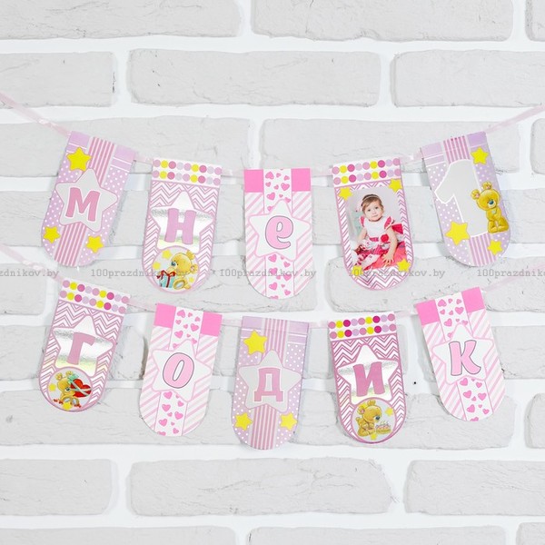 Гирлянда "С ДР кароч!" розовая, дл.108 см