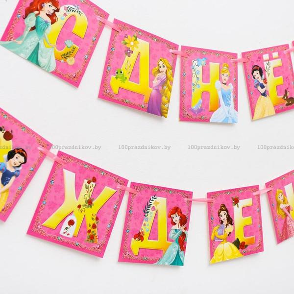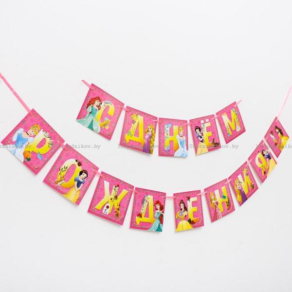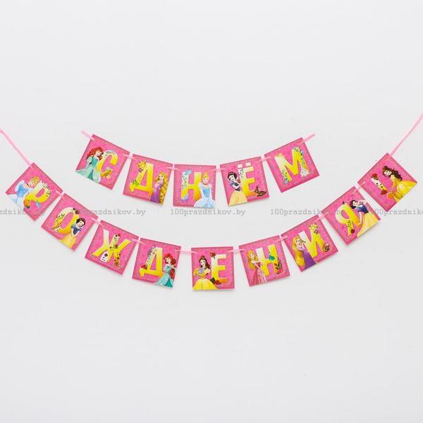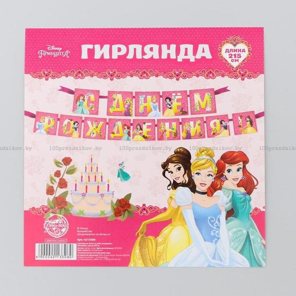 Гирлянда на ленте "С днем рождения", 215 см, Принцессы