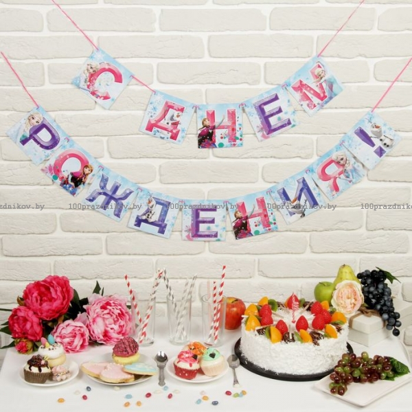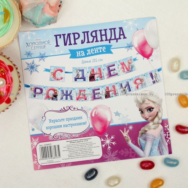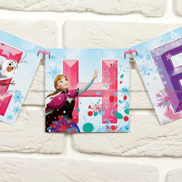 Гирлянда на ленте "С Днем Рождения!", Холодное сердце, дл. 215 см