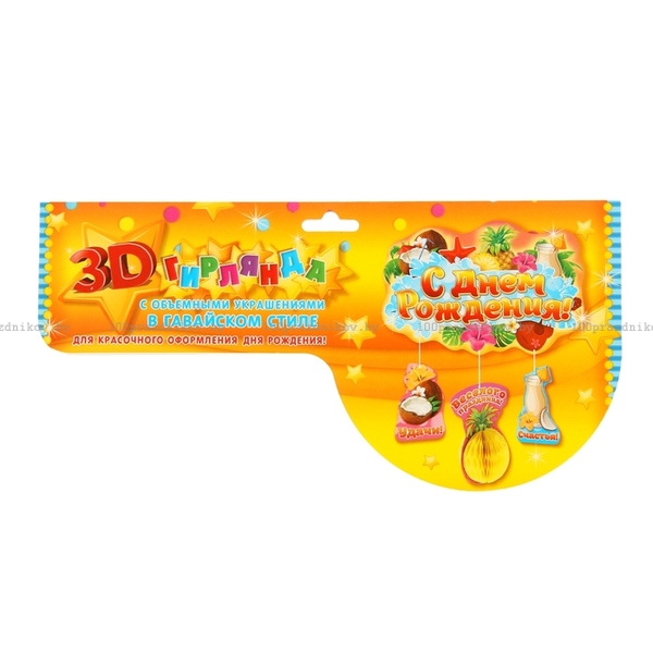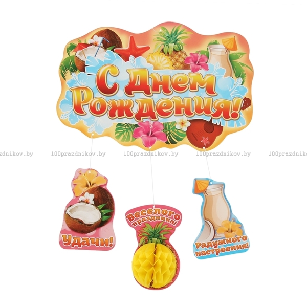 Гирлянда-плакат «С днём рождения!», с гофрой, гавайская