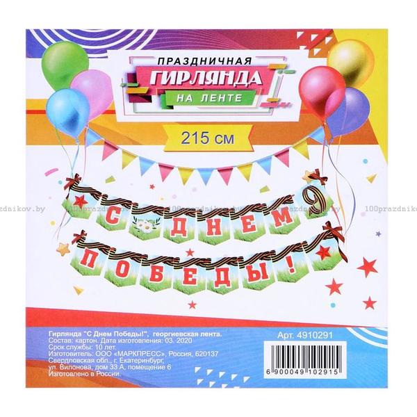 Гирлянда "С Днём Победы!" георгиевская лента, 215 см