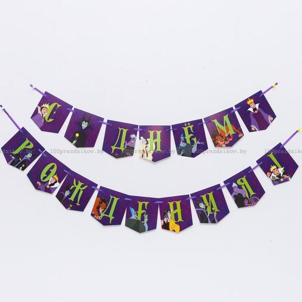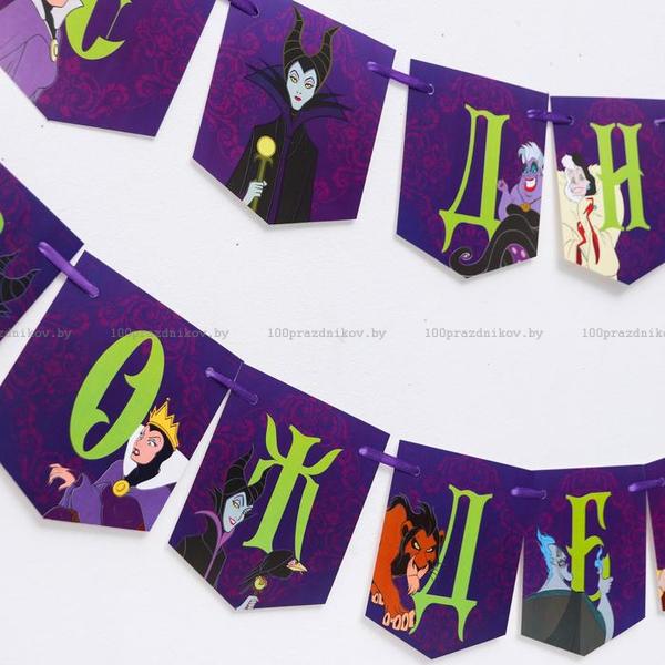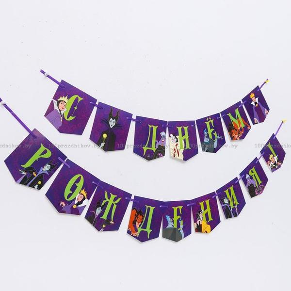Гирлянда «С Днем Рождения», Disney Злодейки, дл. 215 см