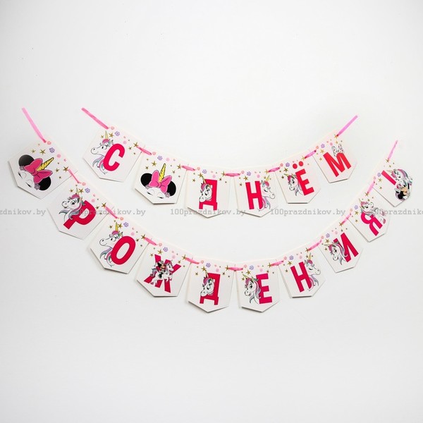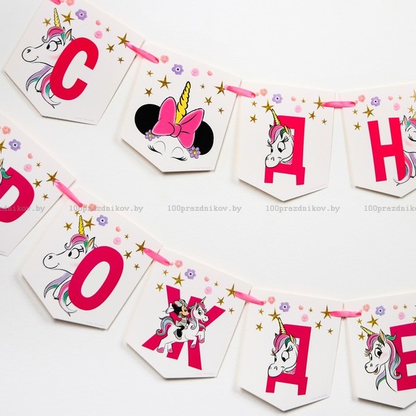 Гирлянда «С Днем Рождения!», Единорог, Минни Маус, дл. 215 см