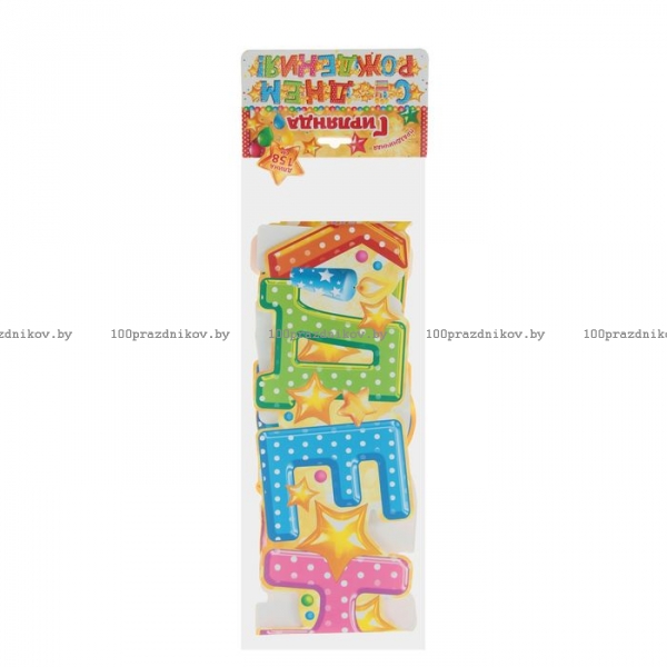 Бумажная гирлянда С Днем рождения со звездами. Отличный вариант украшения праздничного вечера. Размер проздничной гирлянды 10 см × 158 см × 0,1 см