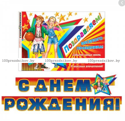 Гирлянда "С ДР кароч!" розовая, дл.108 см