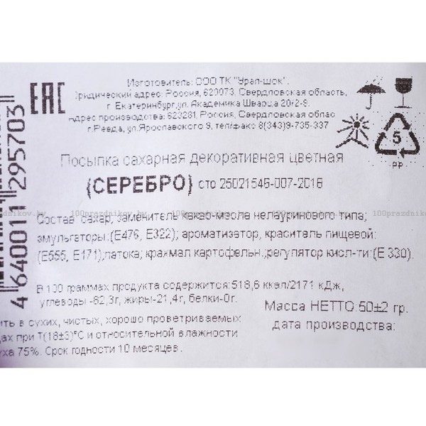 Кондитерская посыпка «Вермишель», серебро, 50 г
