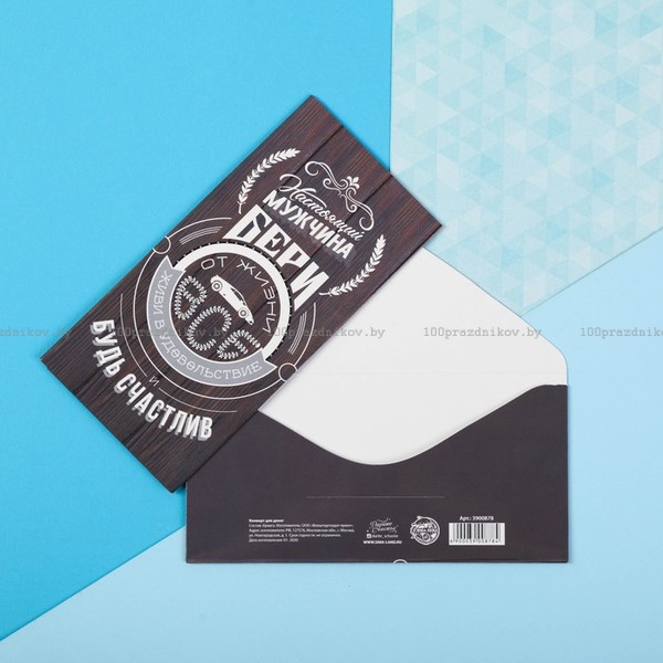 Конверт для денег «Настоящему мужчине», шрифт, частичный УФ-лак, 16,5 × 8 см