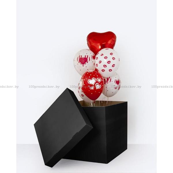 коробка+ 5 шт шар латексный 12"+1шт фольгированое сердце 18"