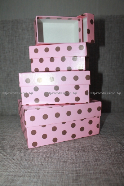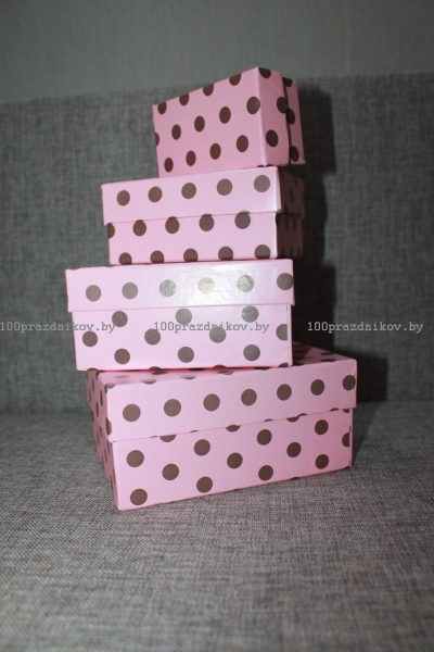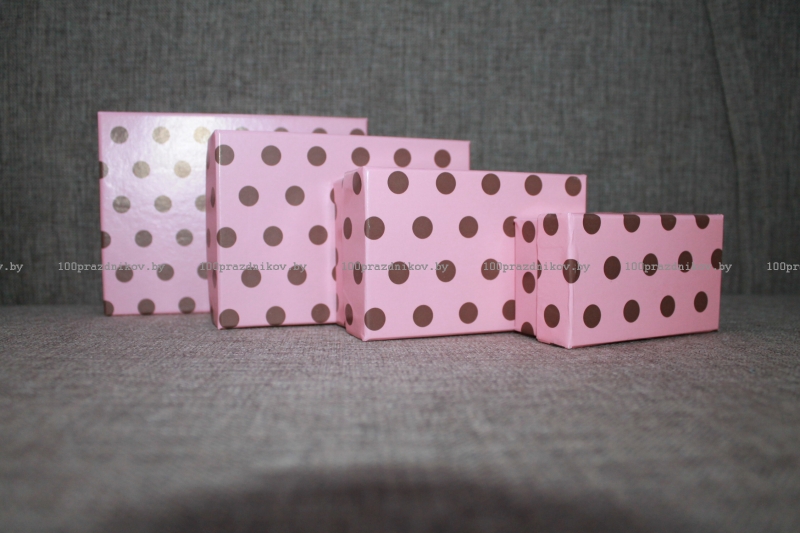 Коробка розовая в горох, прямоугольные