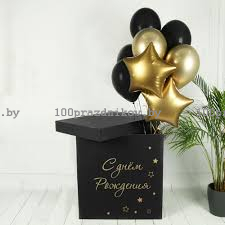 Коробка сюрприз для воздушных шариков черного цвета. В коробку можно вместить до 7 обычных латексных шарика с гелием+ ваш небольшой подарок. Стоимость шариков, украшение коробки рассчитывается отдельно.