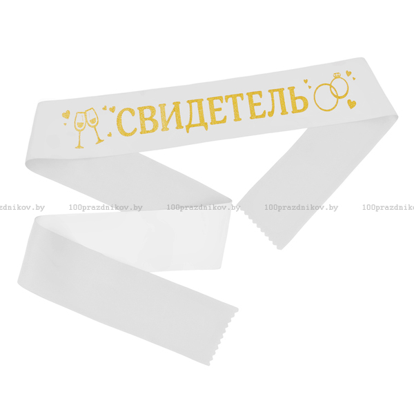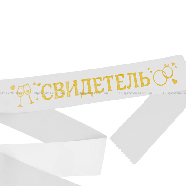 Лента атласная «Свидетель», белая с золотыми блёстками, 190 х 9,5 см