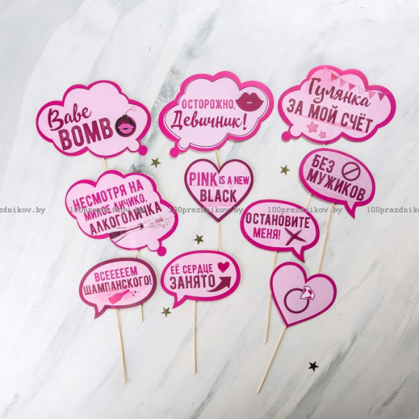 Набор фотобутафории на девичник "Всем шампанского", 21 х 29,5 см.