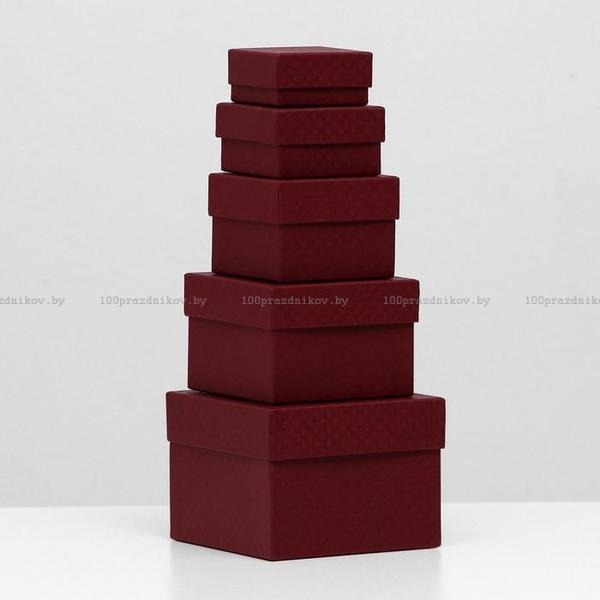 Набор коробок 5 в 1 "Бордовая сетка", 12 х 12 х 9 - 6 х 6 х 3 см